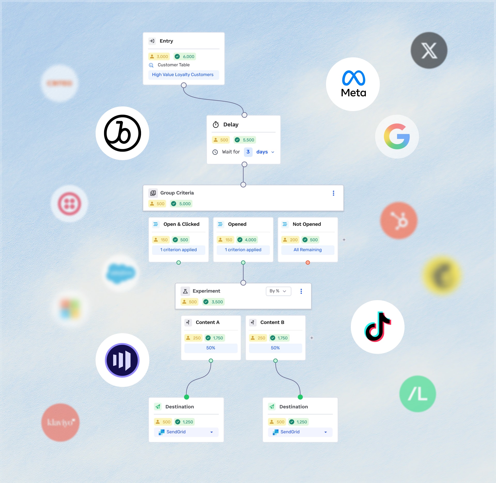 Explore cloud integrationsAudiences, journeys, and insights. One compounding growth loop.