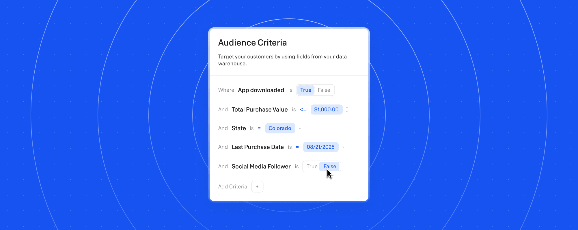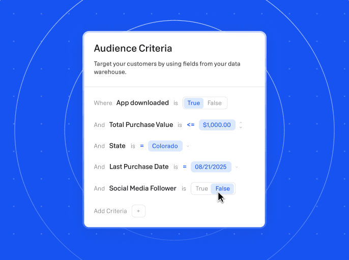 Audience Agent learns from your user data, automatically generating high-impact audiences. Activate AI-generated segments instantly or fine-tune them with an intuitive self-serve editor.