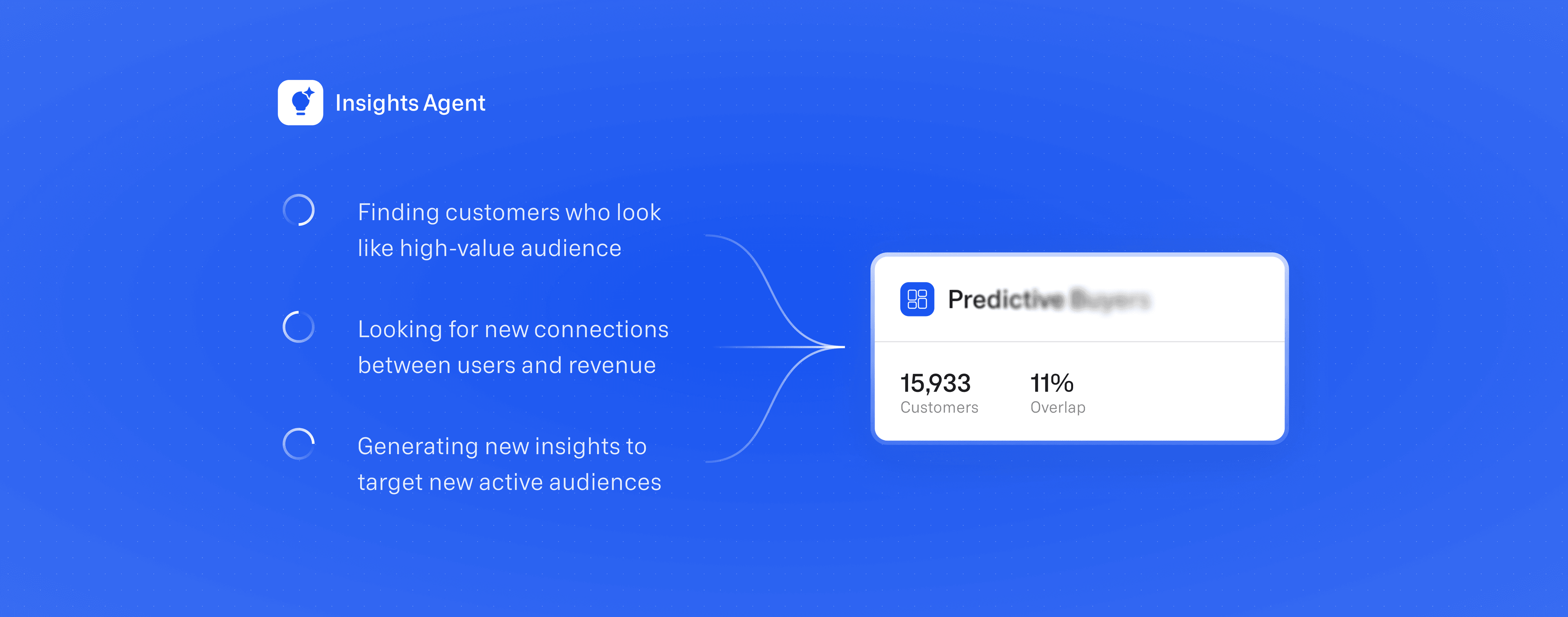 AI agents analyze your cloud data to discover customer insights and trends, surfacing audience and journey suggestions that allow your marketing team to test, iterate, and grow faster.