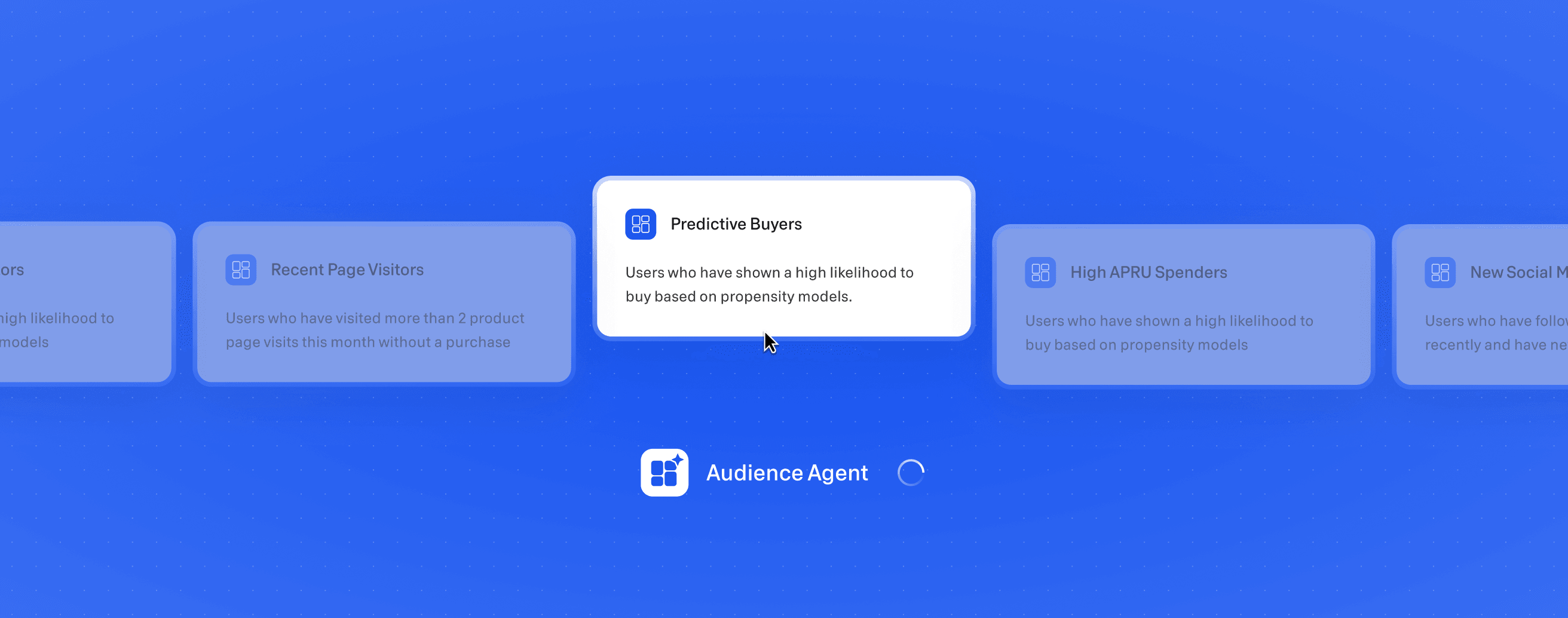 Set your goals in AI Studio, and growth agents proactively build audiences and campaigns for your review, helping you unlock new opportunities, improve performance, and fuel compounding growth.