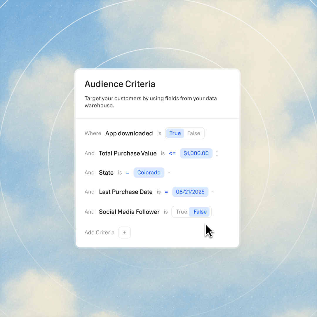 Audience building | Relies on siloed, outdated data that doesn't reflect real-time customer behavior, leading to misaligned segments and ineffective targeting. Data teams often have to pull audiences for marketers. | Marketers leverage real-time audience building powered by cloud-native data and assisted by an Audience Agent that pinpoints hyper-relevant segments for every campaign. |