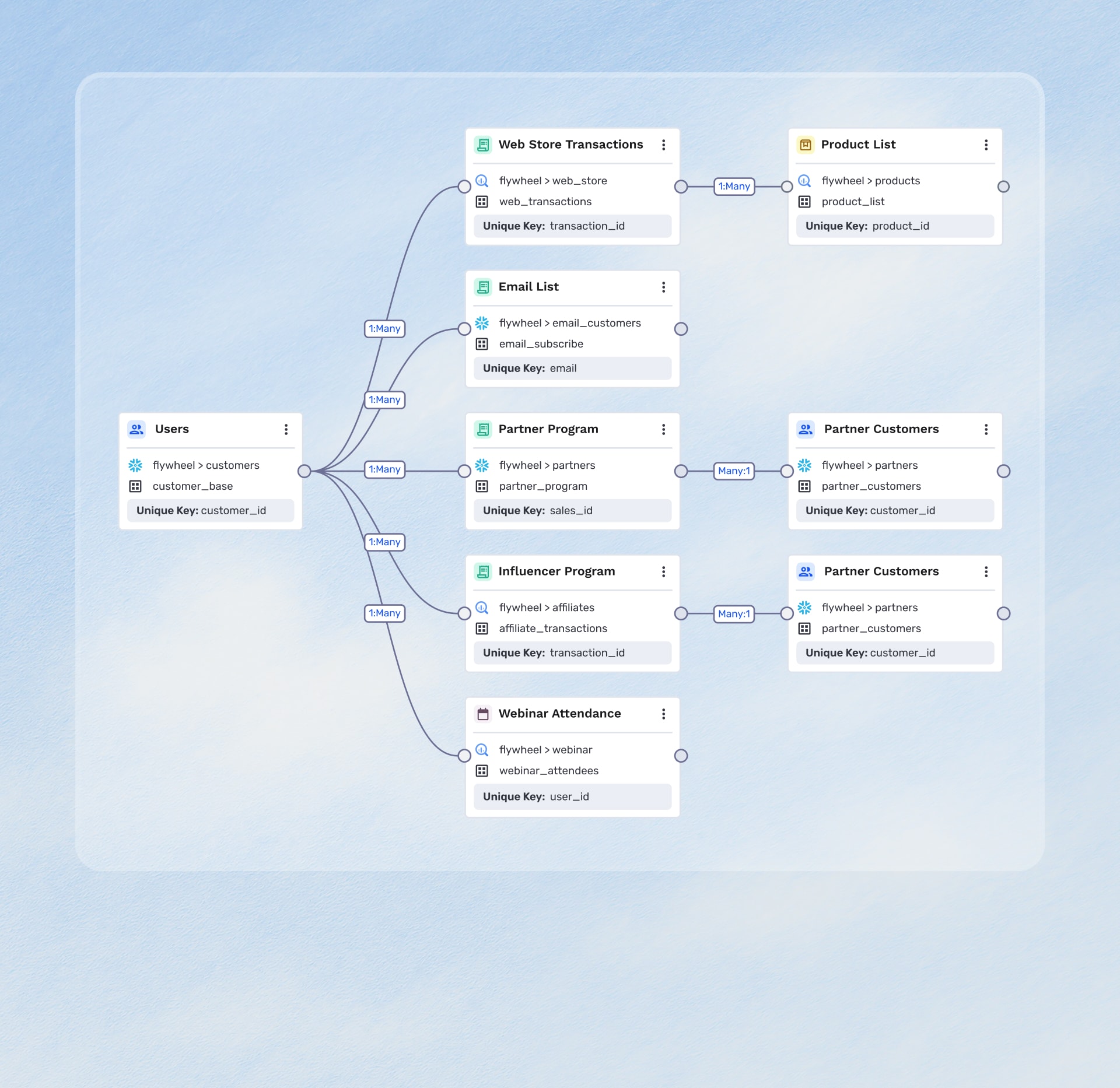 Map your cloud data and tables to GrowthLoop in just minutes and keep your data updated with automated syncs