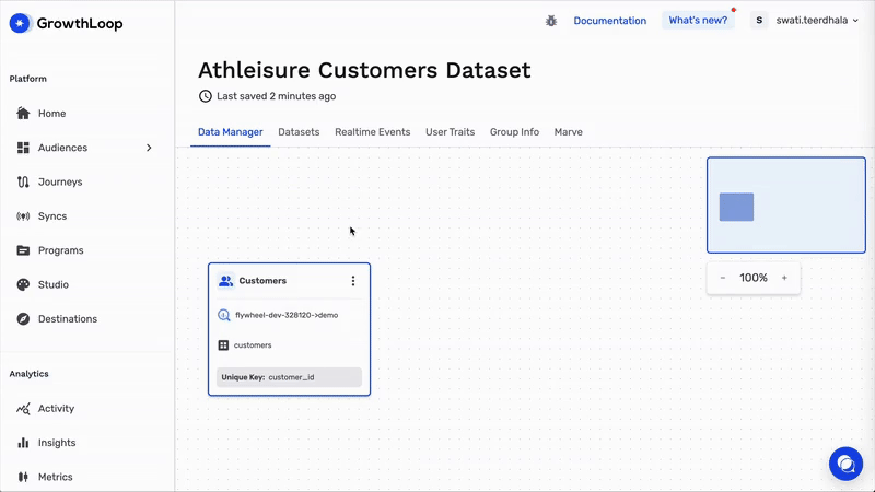Data Manager brings a visual, intuitive UI to data modeling, making it simple for data teams to view, connect, and manage datasets all in one canvas. No more guesswork or documentation sprawl, just a single visual map that accelerates onboarding, ensures data accuracy, and lays the foundation for self-serve marketing activation.